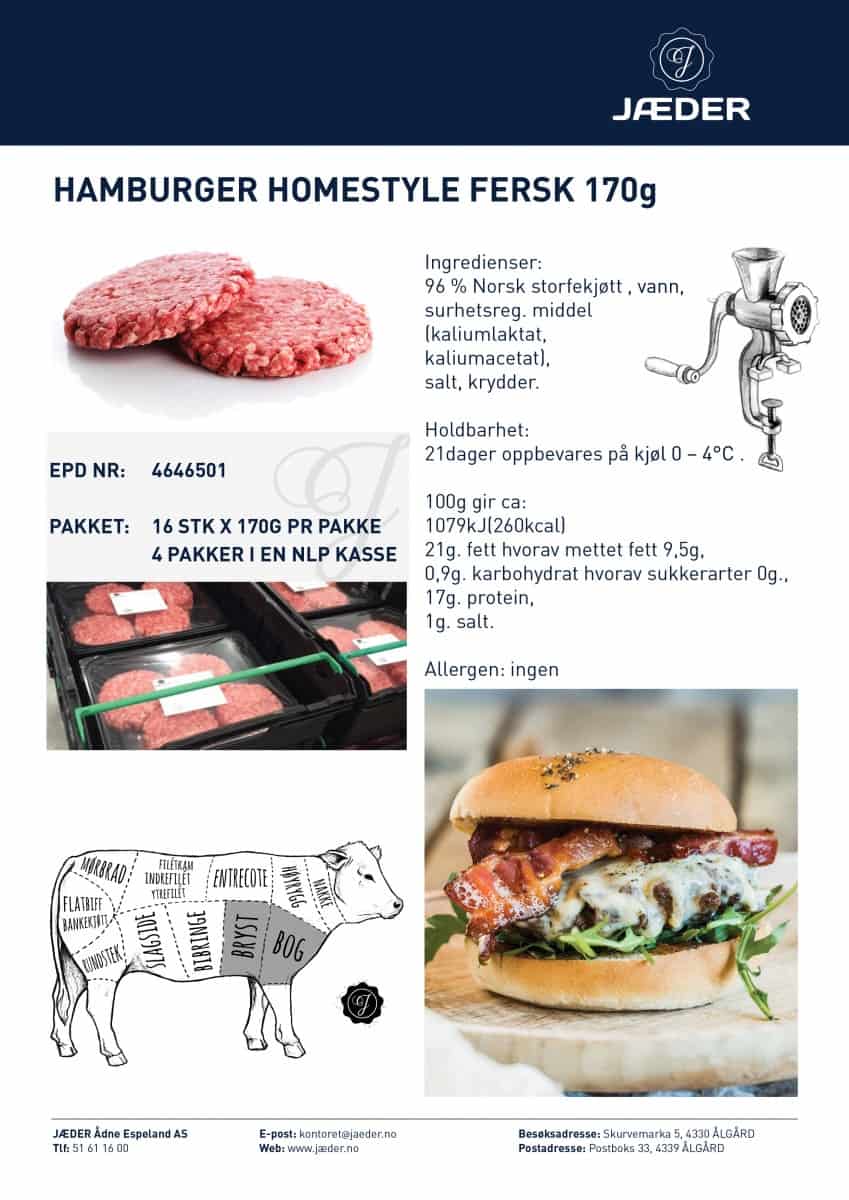 Nå lanserer vi Homestyleburgeren også som ferskvare! Råvarer fra bog og bryst grovkvernes i denne premiumsburgeren. Burgeren ser ut som om den er laget på kjøkkenet.