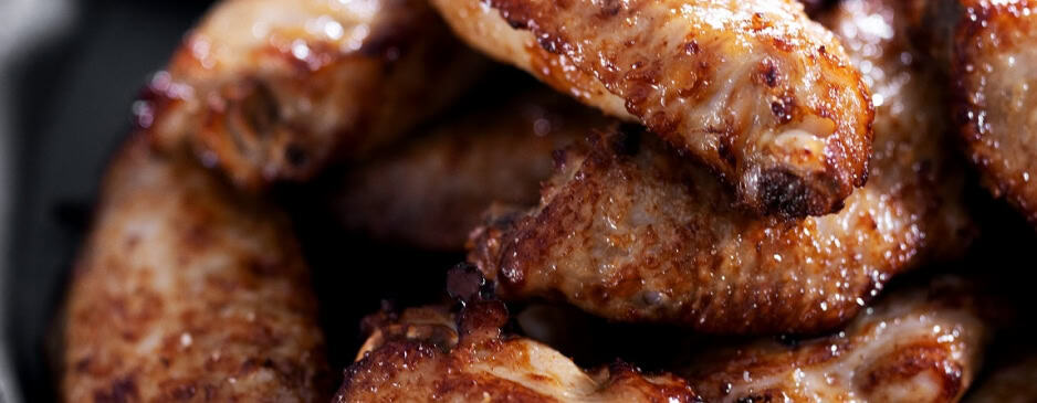 Kylling mellomvinger fra Hå Kylling, som er grillet. Man har mange muligheter til å sette sitt eget preg på denne. Vekt per vinge vil variere, men gjennomsnittsvekt er ca. 28 g.